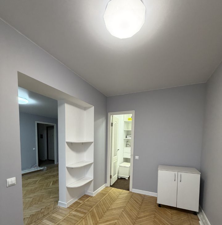 Отличное состояние: Качественный современный ремонт (чистовая отделка, новая сантехника, электрика). Свободная планировка позволяет легко обставить квартиру по своему вкусу.