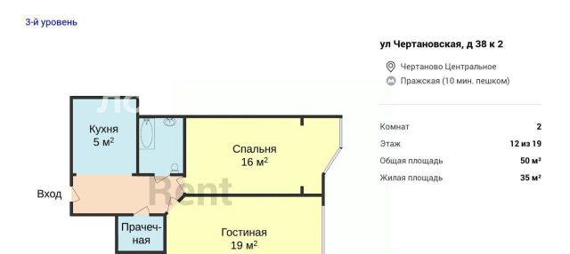 2-к кв. Москва Чертановская ул., 38к2 (50.0 м²)