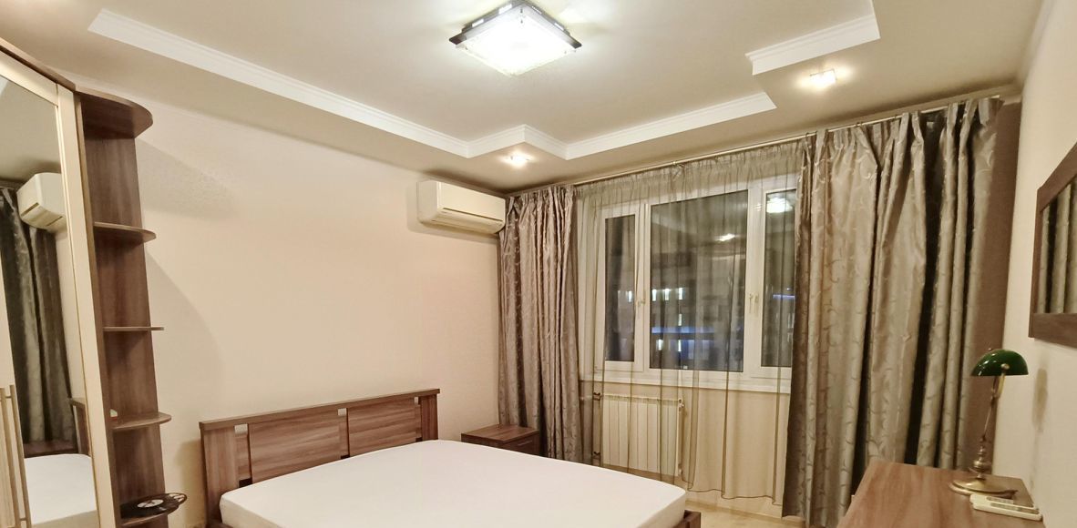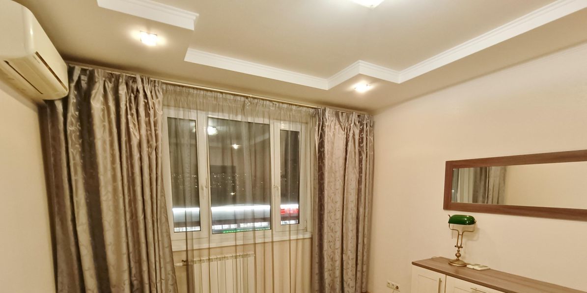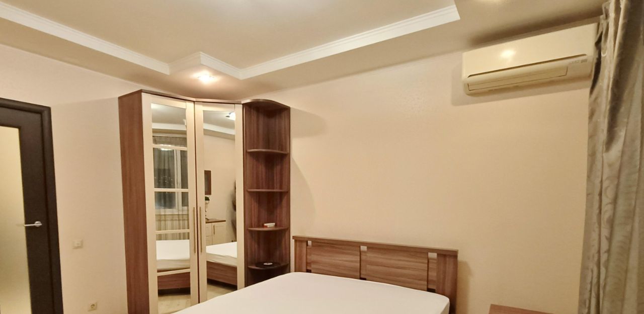 Отличное предложение. Капитальный, качественный ремонт. Комнаты изолированные (18м. и 14м.). Встроенная кухня: Посудомоечная машина, духовой шкаф, варочная панель, вытяжка, холодильник, фильтр для воды, маленький телевизор. В комнатах: Два кондиционера, двуспальная кровать с подъемным механизмом, угловой диван, угловой шкаф, комод, компьютерный стол. В коридоре встроенный шкаф. Санузел раздельный, стиральная машина. Окна стеклопакеты, на восток. Небольшая, застекленная лоджия. Чистый подъезд. Очень развитая инфраструктура: рядом с домом много, магазинов, в том числе Eurospar, бассейн спорткомплекс Волна. Парк Кировоградские пруды с зонами отдыха. До метро Пражская 12-15 минут пешком.