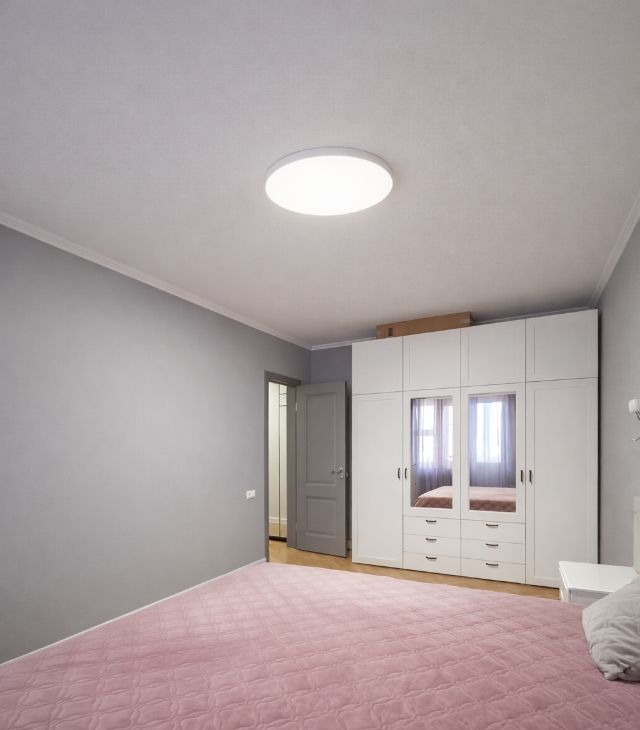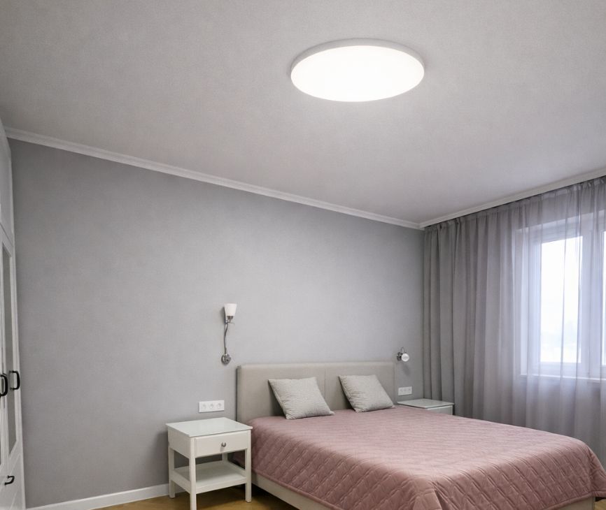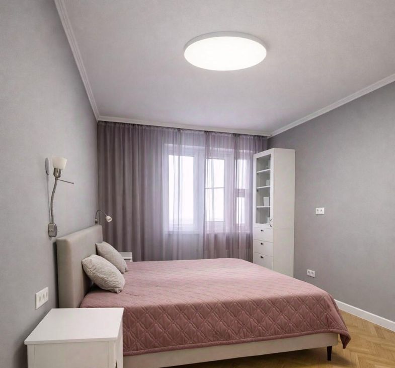 Розетки удобно выведены над прикроватными тумбами с двух сторон.