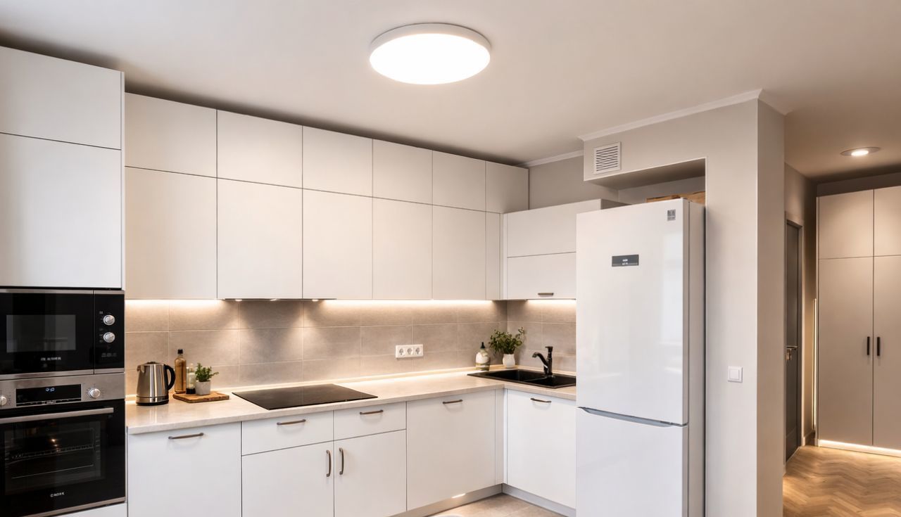 На кухне современный гарнитур и встроенная техника фирмы Bosch: