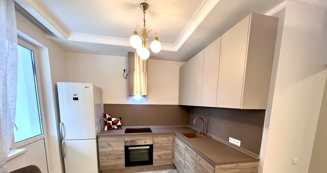 Встроенная кухня фабрики Мария со всей бытовой техникой, в том числе посудомоечной машиной.