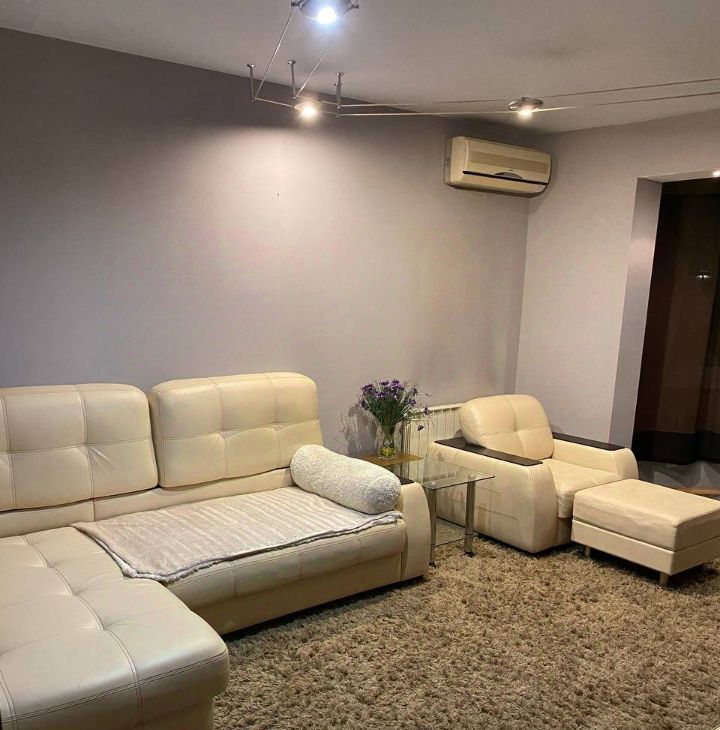 Квартира полностью укомплектована: мебель в комнате и на кухне, техника — холодильник, посудомойка, стиральная машина, кондиционер, интернет. Совмещенный санузел с ванной и душем.