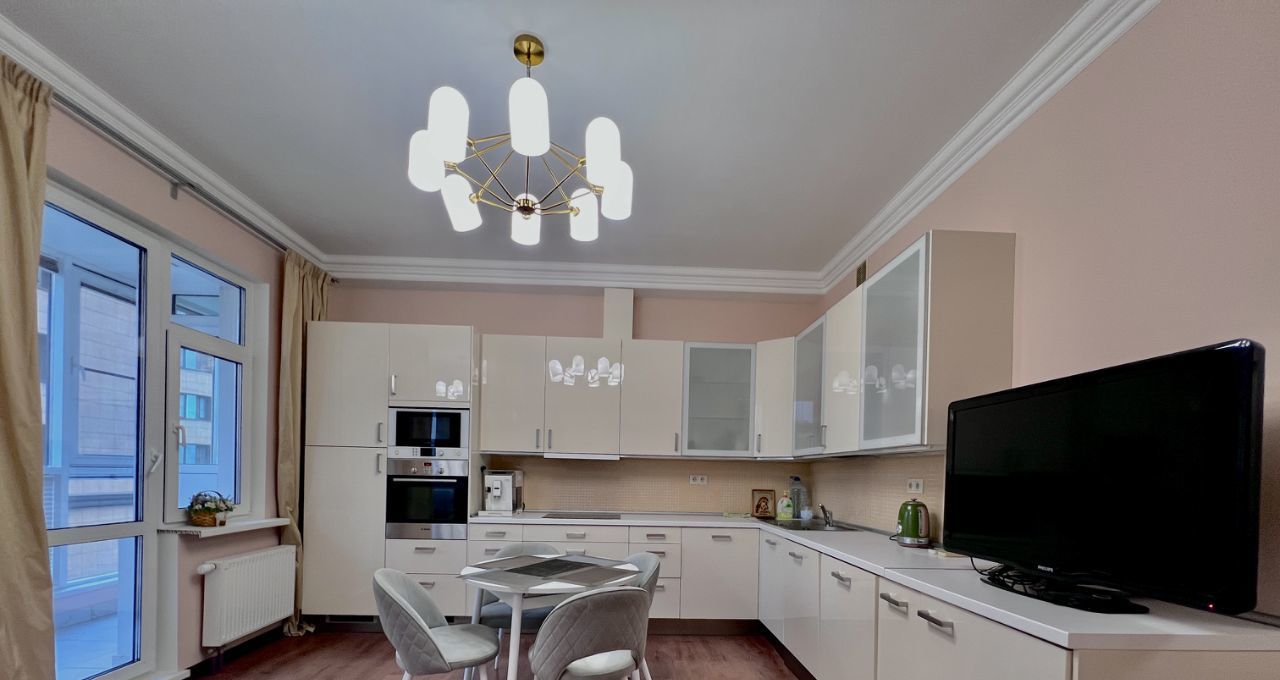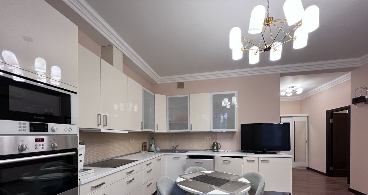 Встроенная кухня оборудована всей бытовой техникой (Германия): холодильник, отдельная морозильная камера, посудомоечная машина, электроплита, духовой шкаф, микроволновая печь, стиральная машина. Имеется необходимая посуда. Телевизор (2 шт.). Кондиционер (2 шт.).