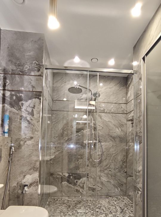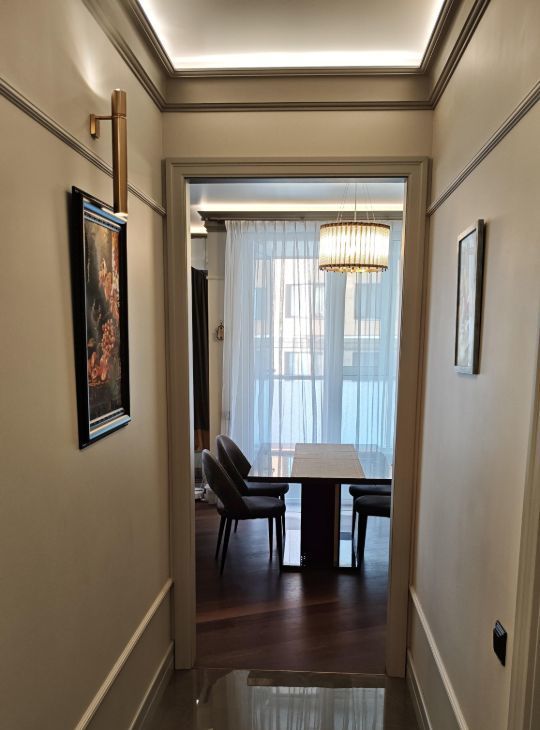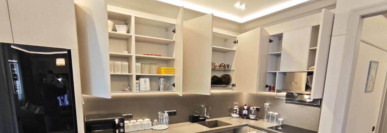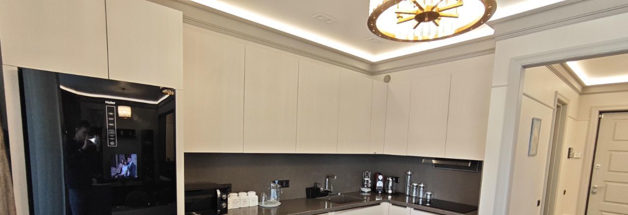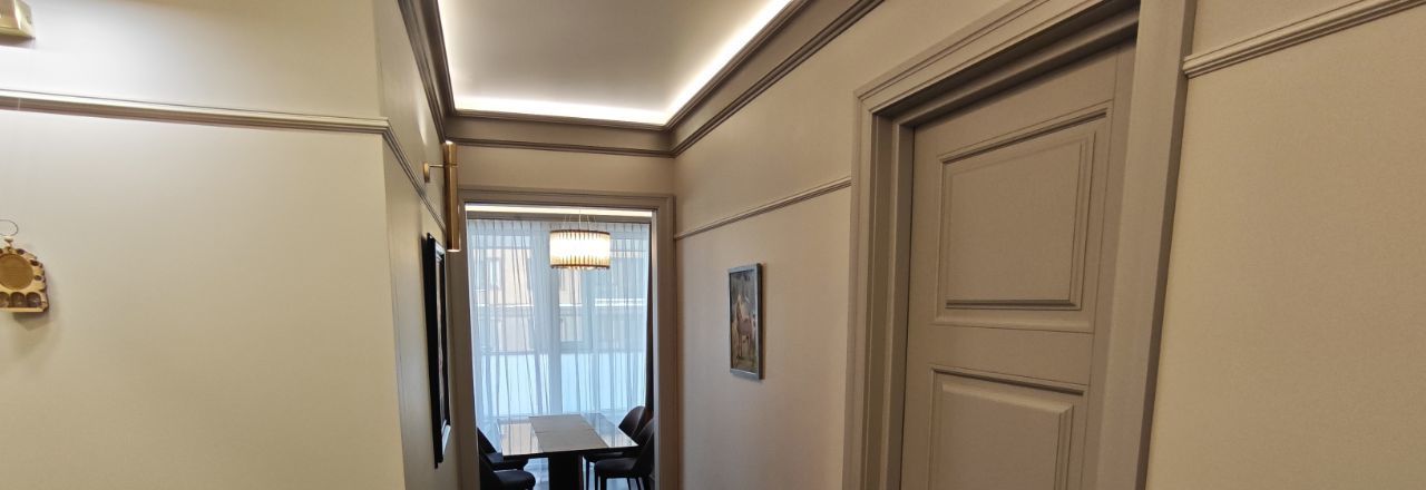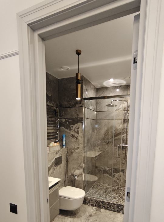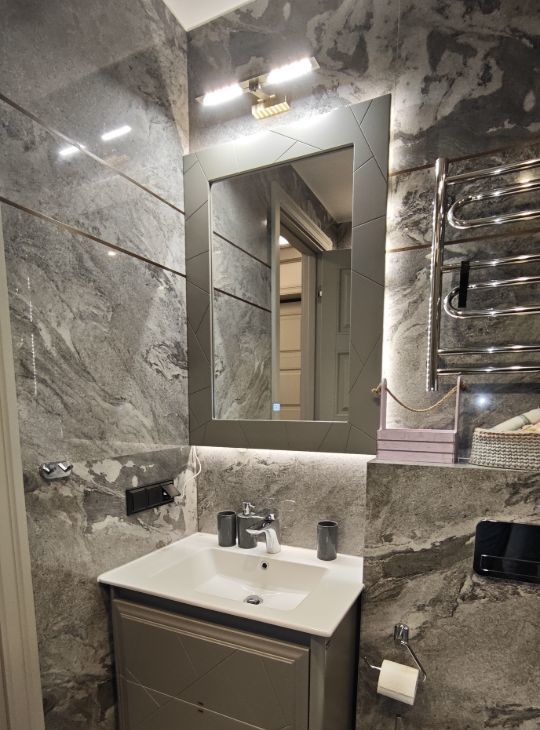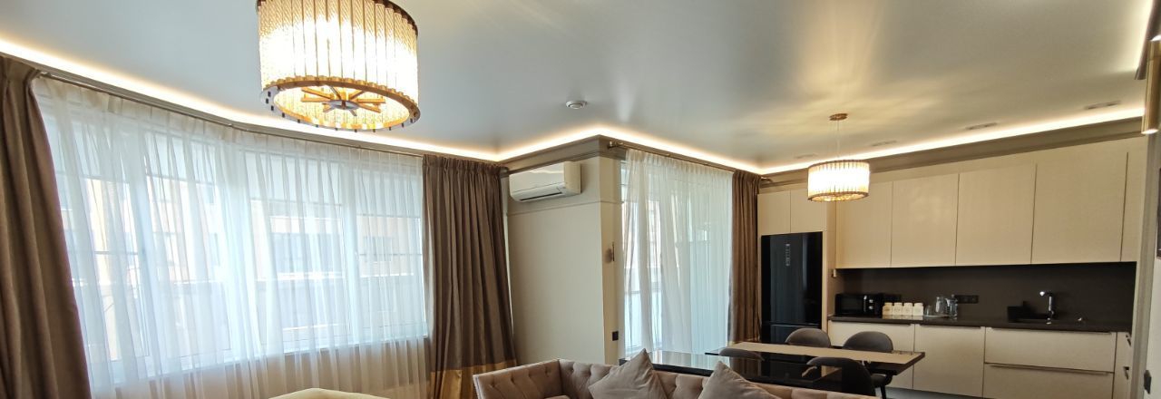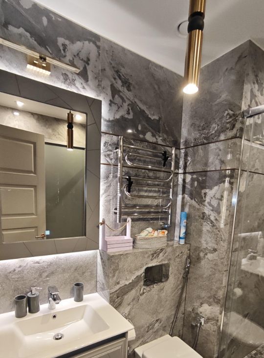 Каждая комната обставлена функционально и со вкусом. На кухне предусмотрено всё необходимое для комфортного проживания. В вашем распоряжении будет широкий спектр бытовой техники: кондиционер, холодильник, телевизор, а также посудомоечная и стиральная машины. В ванной комнате установлена полы и стены мрамор и керамогранит, швы обработаны противогрибковой эпоксидной затиркой. Тёплый пол, активная вытяжка, стиральная и сушильная машины Bosch
