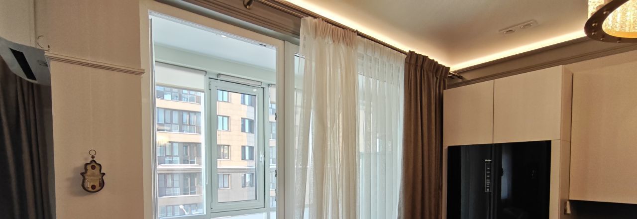 Окна выходят на сторону, где отсутствует высотная застройка, что обеспечивает естественное освещение. В этом жилом пространстве выполнен дизайнерский ремонт, который создаёт атмосферу уюта и гармонии. Ремонт делался для себя, чем и обусловлено качество работ и использование премиальных отделочных материалов.