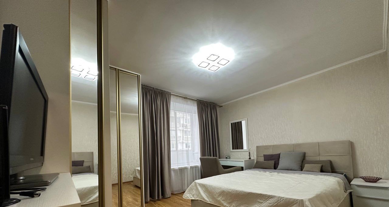 Квартира полностью укомплектована необходимым: Стиральная машина, СВЧ, телевизор, просторная кухня, уютная спальня с туалетным столиком