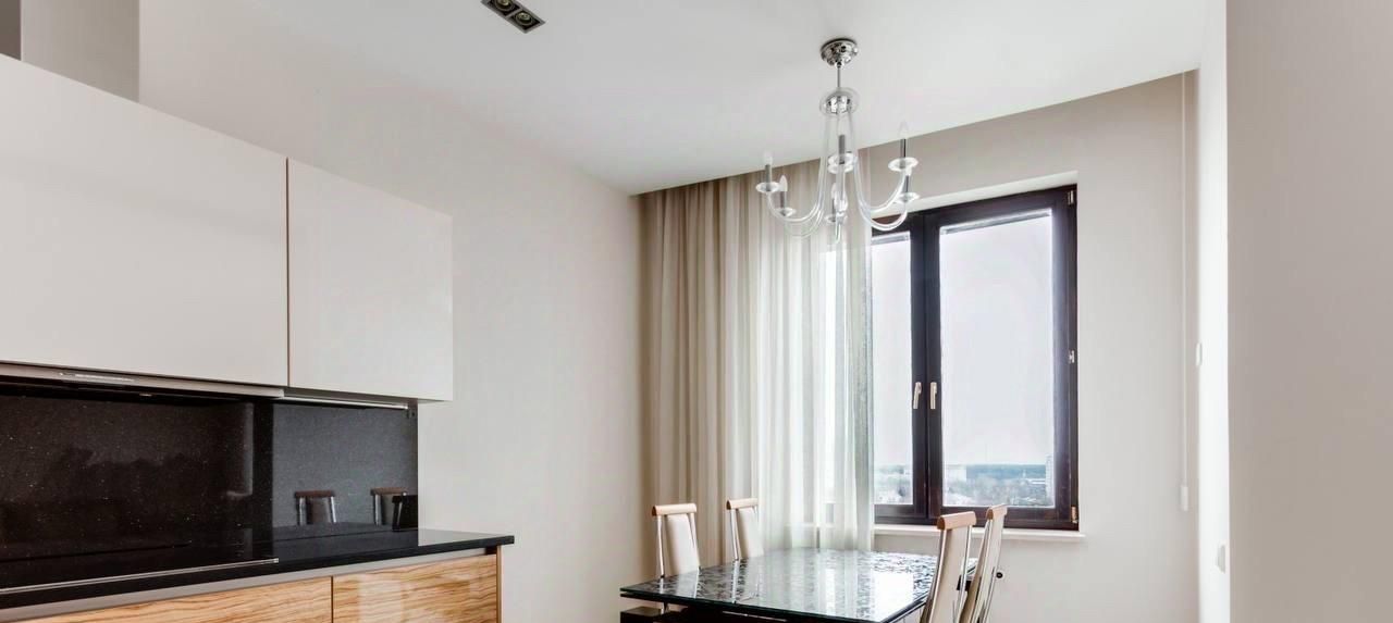 Сдаётся дизайнерская 2-комнатная квартира с панорамными видами на пойму реки Сетунь и Университет. ЖК Дом на Давыдковской — современное пространство с архитектурной концепцией, воздухом и светом.