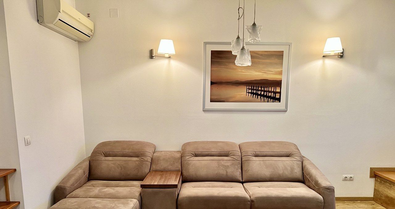 Собственники квартиры, обладая великолепным вкусом, продумали каждую деталь, вплоть до мелочей. Сделан чудесный ремонт в приятных бежевых тонах. Потолки высотой более 3 метров! На полу в санузлах, коридоре и на кухне - плитка (теплый пол), в жилых комнатах паркетная доска. Разноуровневые светильники, приятных оттенков шторы, зеркала, мягкая мебель, спальный гарнитур создают красоту и уют. Нет ничего лишнего, все стильно и очень достойно.