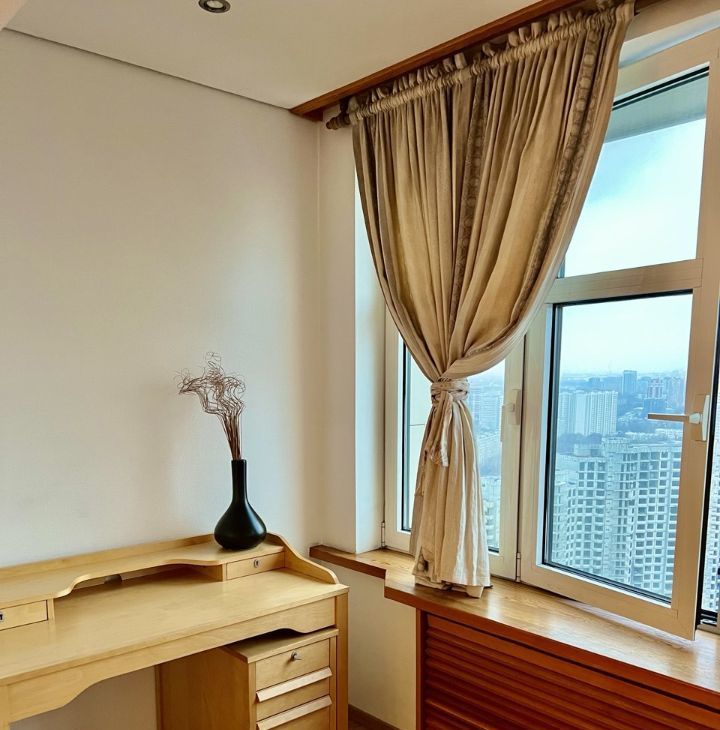 В квартире много света, выполнен дорогой дизайнерский ремонт. За счет высокого этажа из окон открывается просто потрясающий вид на красавицу Москву! Вы непременно оцените данную квартиру, когда будете любоваться закатами или сверканием ночных огней мегаполиса. Планировка квартиры очень удачная: холл, гостиная, кухня, отдельная гардеробная, прекрасная изолированная спальня, отдельно выделенная зона для работы за письменным столом, просторный совмещенный санузел с ванной, биде и душевой кабиной. Общая площадь 80 кв.м. В квартире установлены кондиционеры, бойлер на случай отключения горячей воды, стиральная машина. Квартира полностью меблирована. Кухня оборудована всей необходимой мебелью и техникой, которая удовлетворит запросы самой взыскательной хозяйки, включая холодильник, варочную панель и духовой шкаф, вытяжку, посудомоечную машину и микроволновую печь.