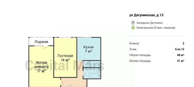 2-к кв. Москва Дегунинская ул., 13 (48.0 м²)