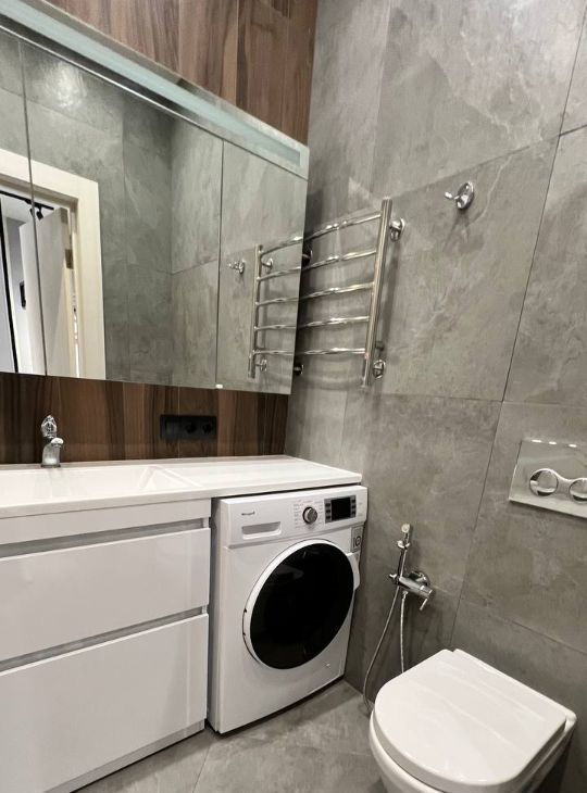 Апартаменты расположена на 6 этаже 23-этажного монолитного дома. Высокие потолки 3 метра. Окна выходят во двор. В апартаментах сделан качественный дизайнерский ремонт. Продается со всей мебелью и техникой (варочная панель, вытяжка, посудомоечная машина, встроенный холодильник, стиральная машина с сушкой, электрический полотенцесушитель, фильтрация воды, водонагреватель, кондиционеры в каждой комнате). Вся техника и мебель - новые. В апартаментах, в соответствии с законодательством, возможна временная регистрация собственника и членов его семьи, а также близких родственников.