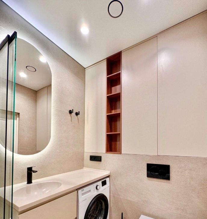 Квартира сделана по дизайнерскому проекту с использованием современных материалов. В зонах,где плитка- тёплый пол.