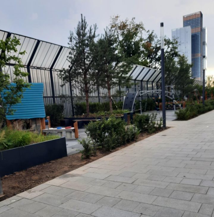 Благоустройство территории от известного британского бюро GILLESPIES с приватным пространством для отдыха жителей.