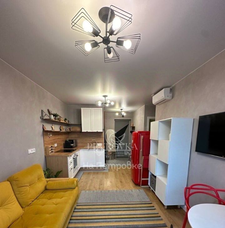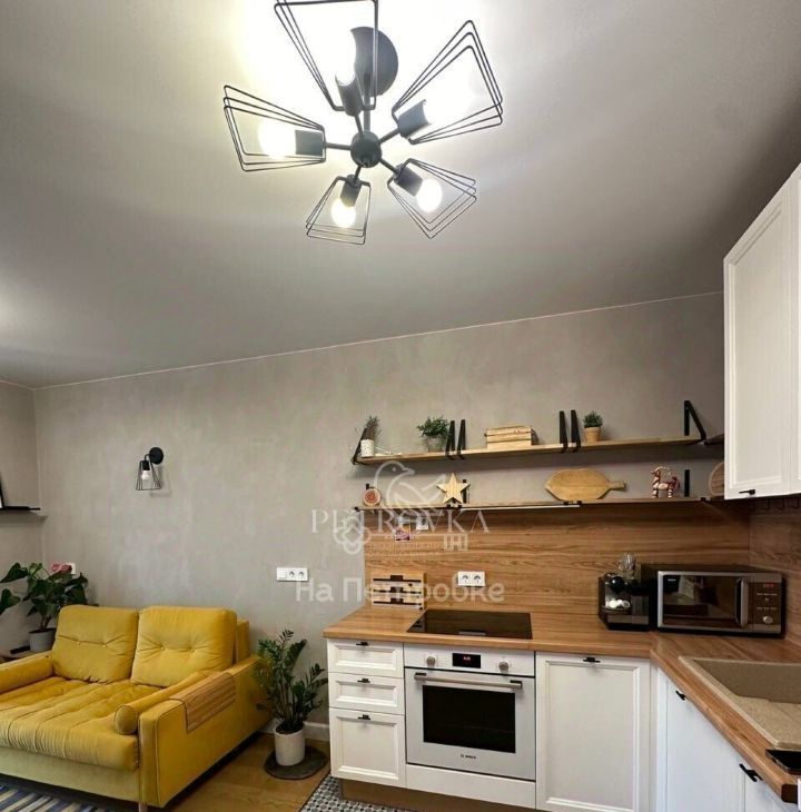 Сдается уютная двухкомнатная квартира со стильным дизайном в ЖК бизнес-класса Д1, состоящая из кухни-гостиной и спальни.