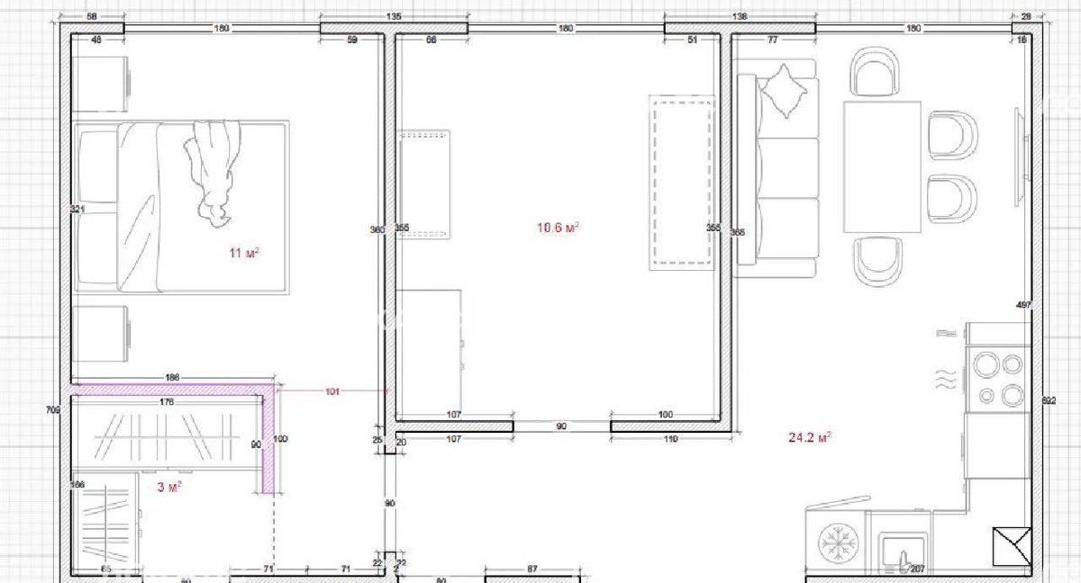 Бытoвaя тexникa: телевизор, духовой шкаф, варочная панель и вытяжка, xoлодильник, чайник, мультиварка, посудомоечная машина, стиpaльнaя машина.