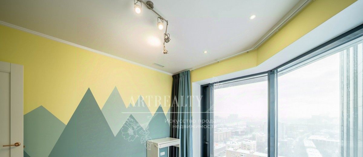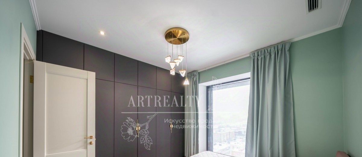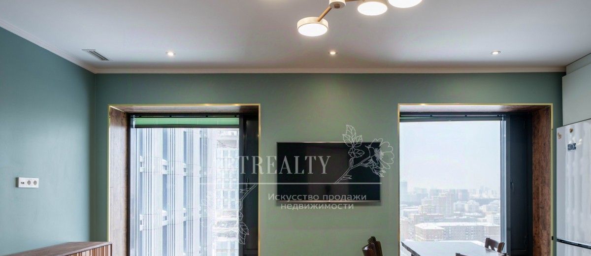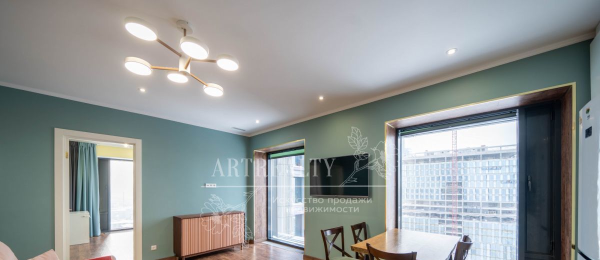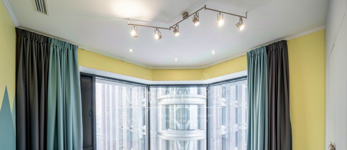 Высокие потолки и и панорамные окна делают квартиру светлой и комфортной.