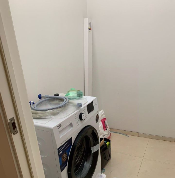 Стиральная машина - установлена в отдельной комнате для хранения. Т.е. там можно еще другие вещи хранить, места много.
