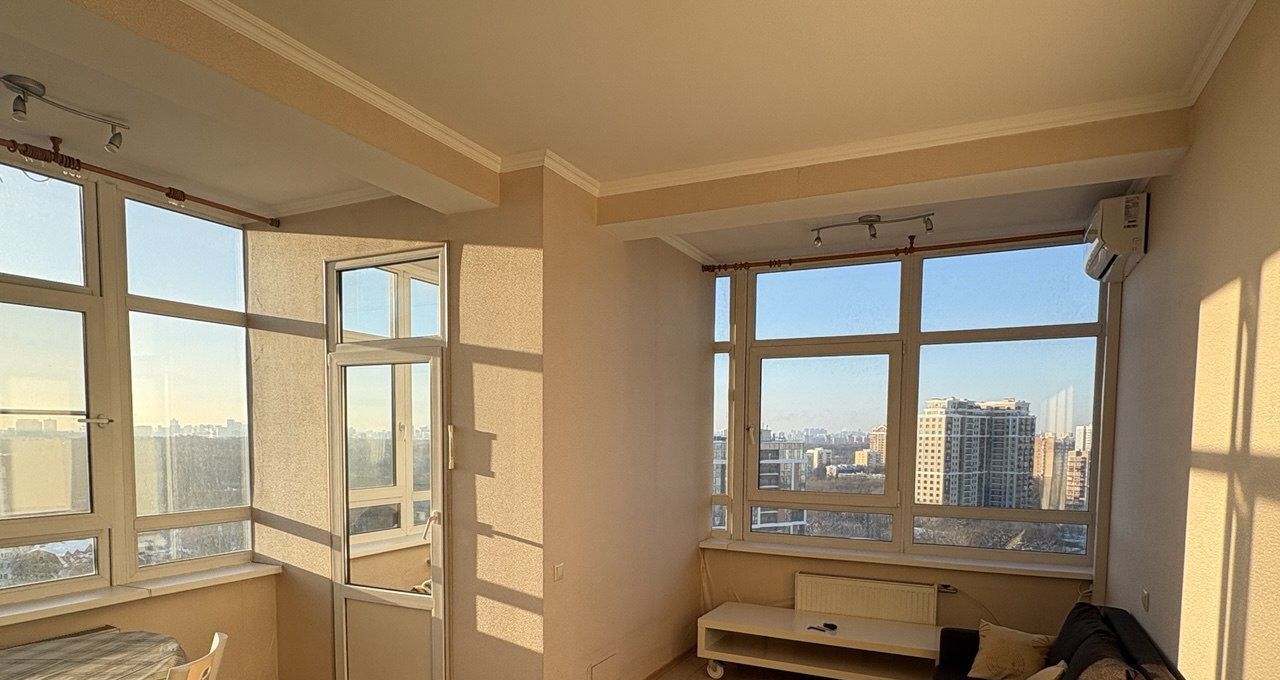 Высокие потолки в квартире, окна с потрясающим видом на лес.