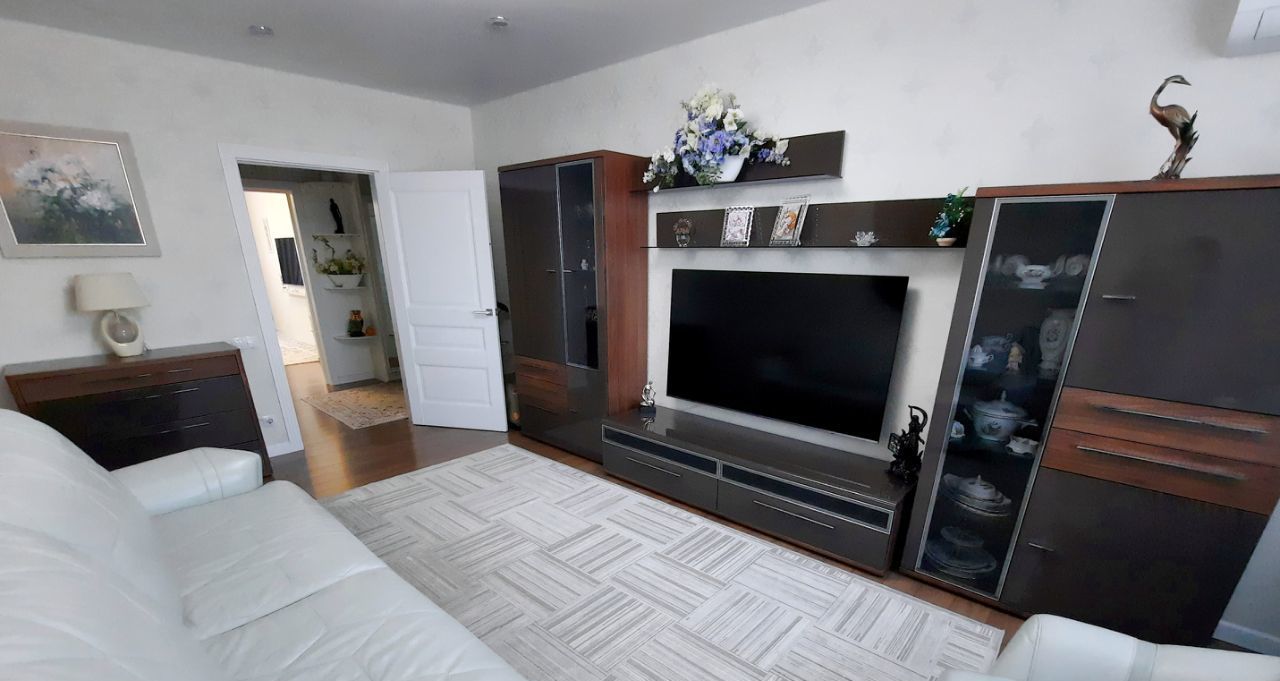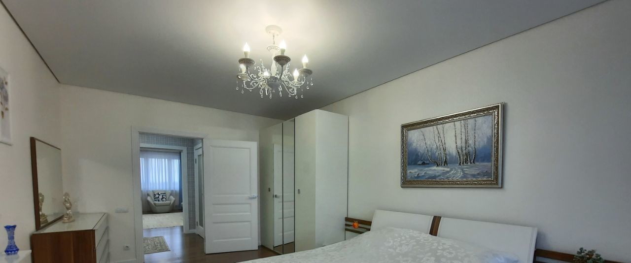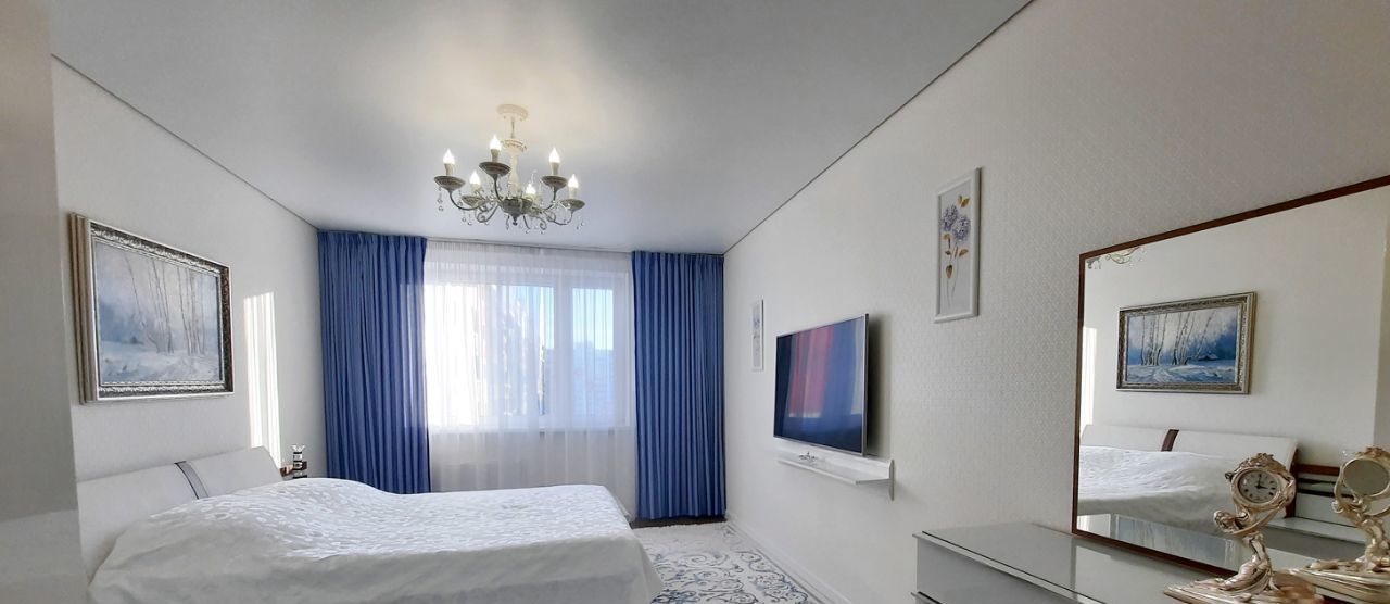 - полностью меблирована и укомплектована бытовой техникой : уютная двуспальная кровать, комод, прикроватные тумбочки, зеркальный шкаф, телевизор - в спальне; удобный кожаный диван, кресло, журнальный столик, современный сервант и телевизор - в гостиной; функциональный кухонный гарнитур с посудомоечной и стиральной машиной Bosch, плитой, телевизор, стильный обеденный стол и стулья- на кухне; в ванной комнате - эргономично организованное пространство с современной ванной, нишей и тумбочкой для хранения; вместительная лоджия с отличным видом прекрасно оборудована для сушки вещей после стирки;