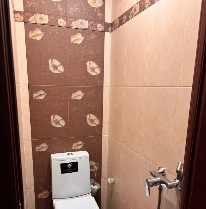 Санузел раздельный. Кухня встроенная с качественной бытовой техникой (с посудомойкой), ТВ, столешница из искусственного камня. В коридоре встроенный шкаф-купе 240 см фирмы "Стильные кухни". Видеодомофон у входа в квартиру.