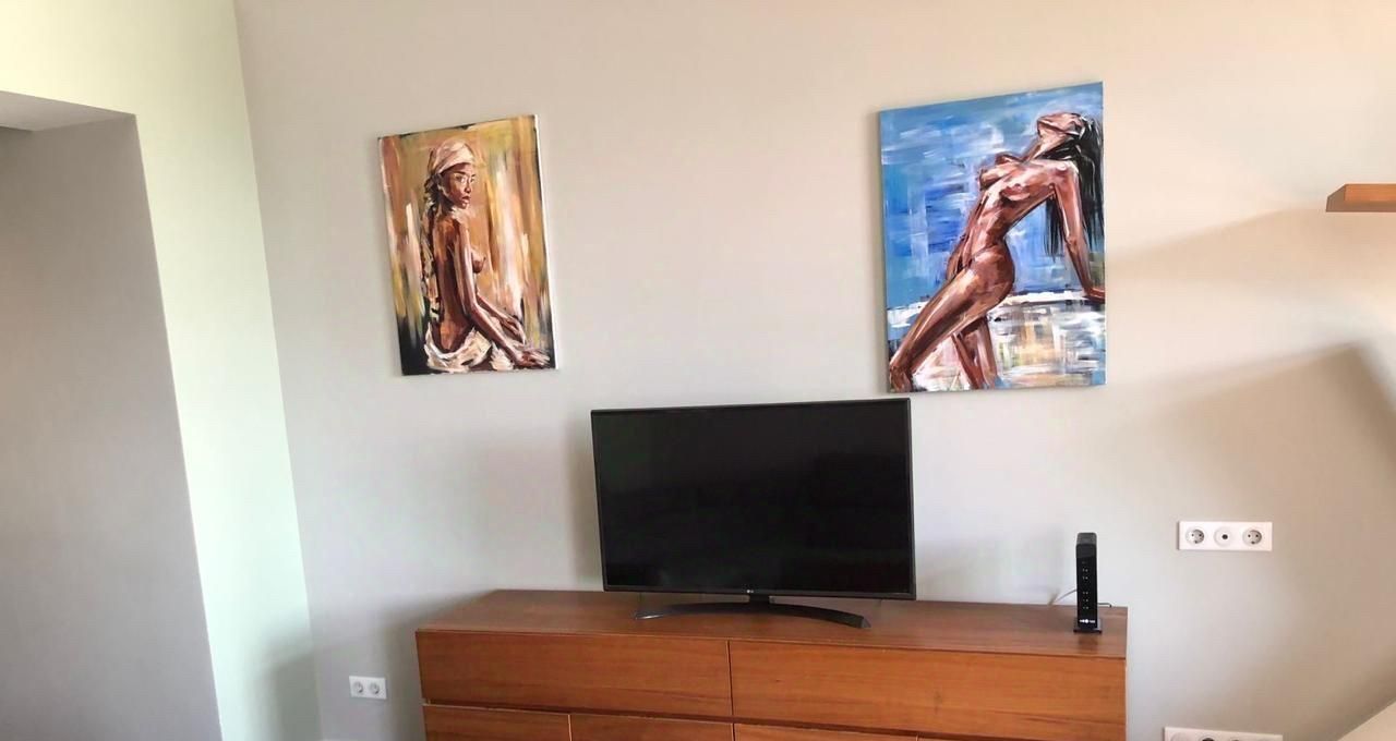 Кухня укомплектована всем необходимым, включая посудомоечную машину. В гостиной имеется кондиционер, телевизор с смарт ТВ, wi fi.