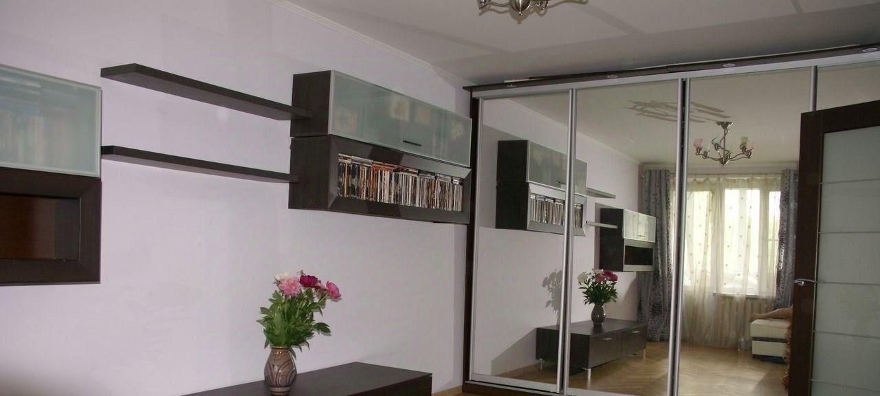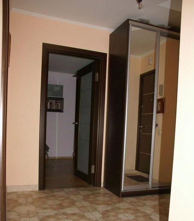 В зале и прихожей большие зеркальные шкафы-купе.