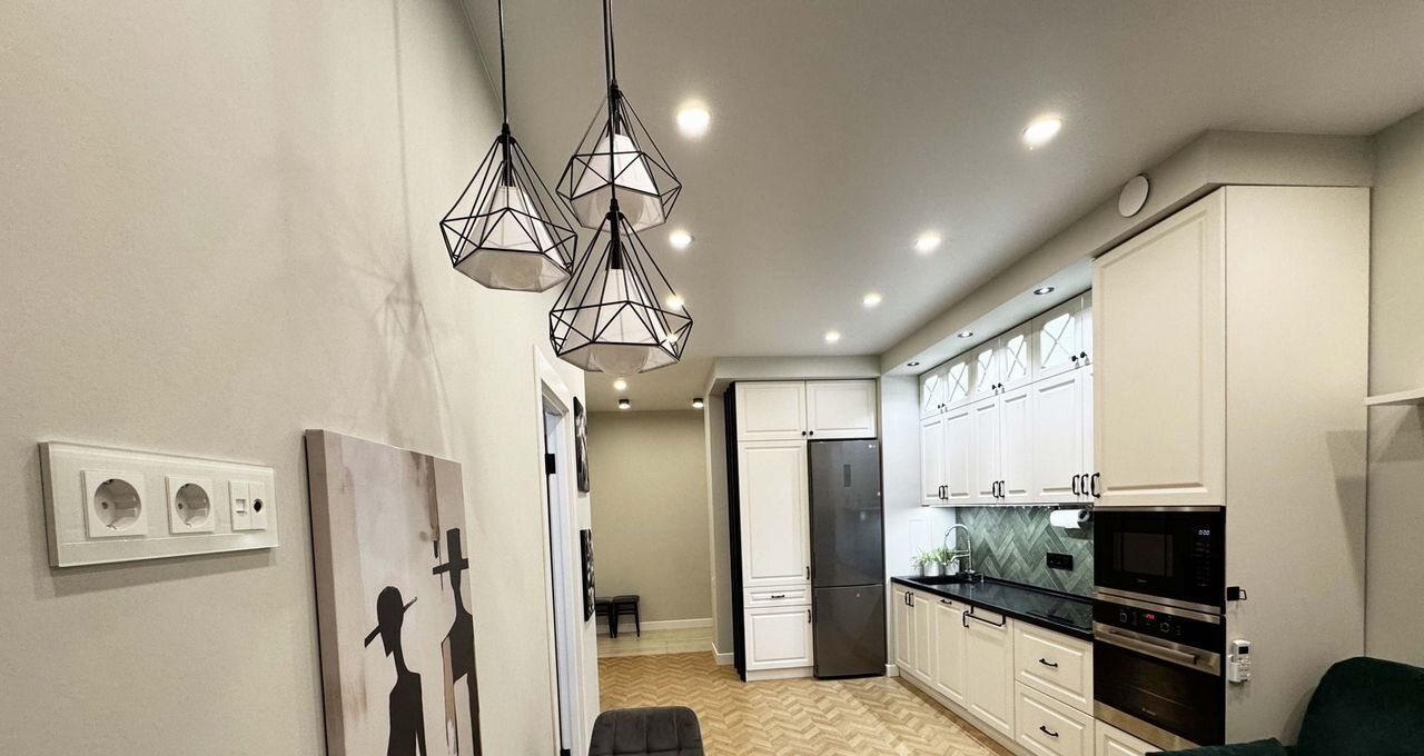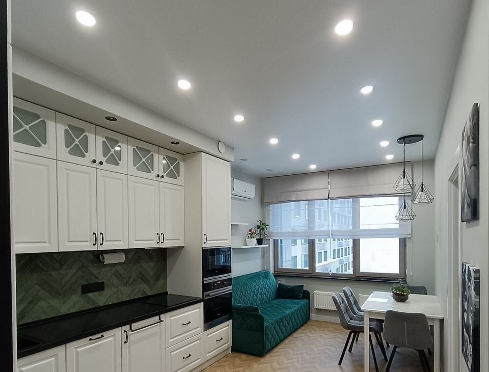- Встроенные микроволновка, духовка, посудомоечная машина, индукционная варочная поверхность известных производителей