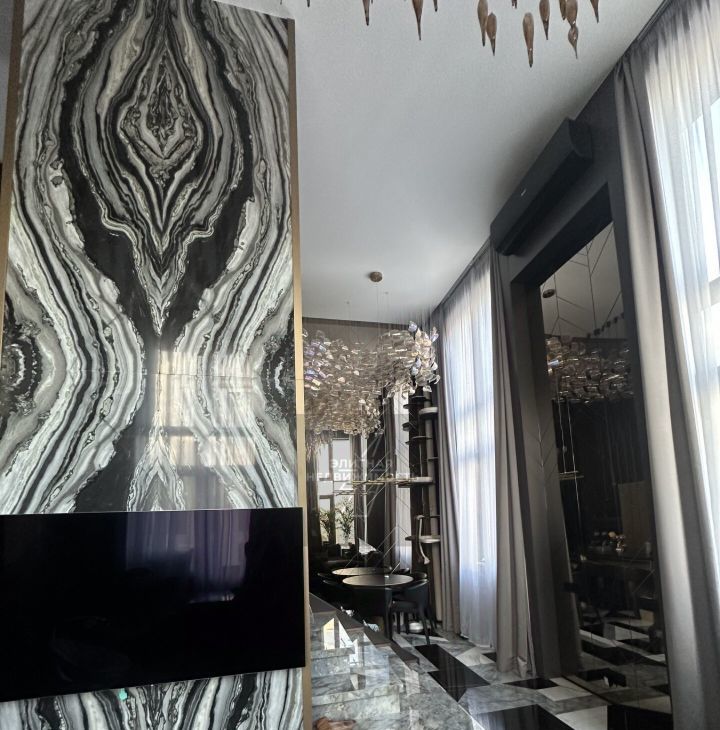 * Интерьер: Дизайнерский, с использованием натурального мрамора, гранита и ценных пород дерева.