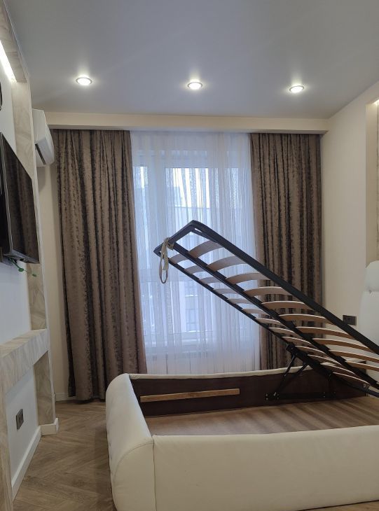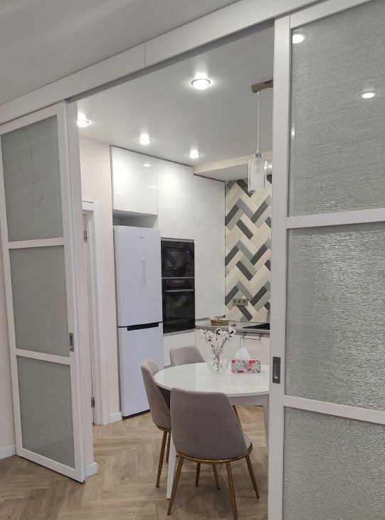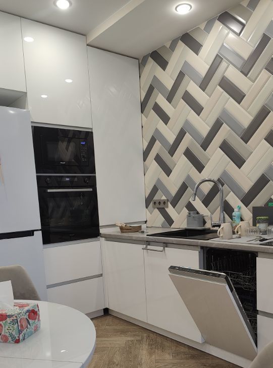 Удобная планировка. Кухня - гостиная обьединена в просторную зону, идеально для приема гостей или семейных вечеров. Можно изолировать, раздвижной дверью. Есть вся необходимая встроенная техника, духовой шкаф, посудомоечная машина, вытяжка. Холодильник, стиральная машина. Удобные встроенные шкафы