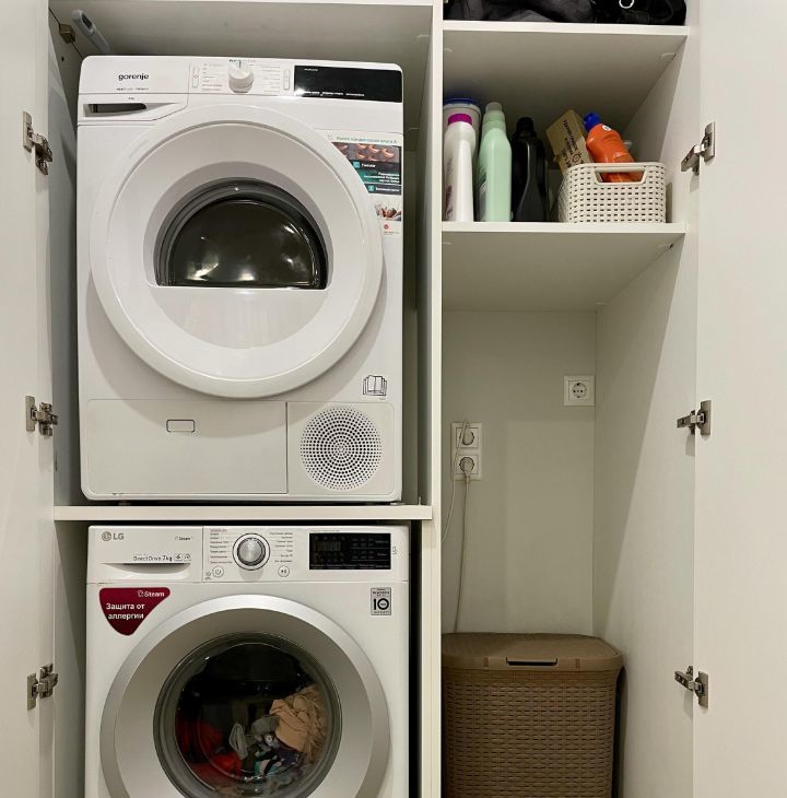 Прачечная зона: установлены отдельные стиральная и сушильная машины (не придется загромождать пространство сушилками для белья)