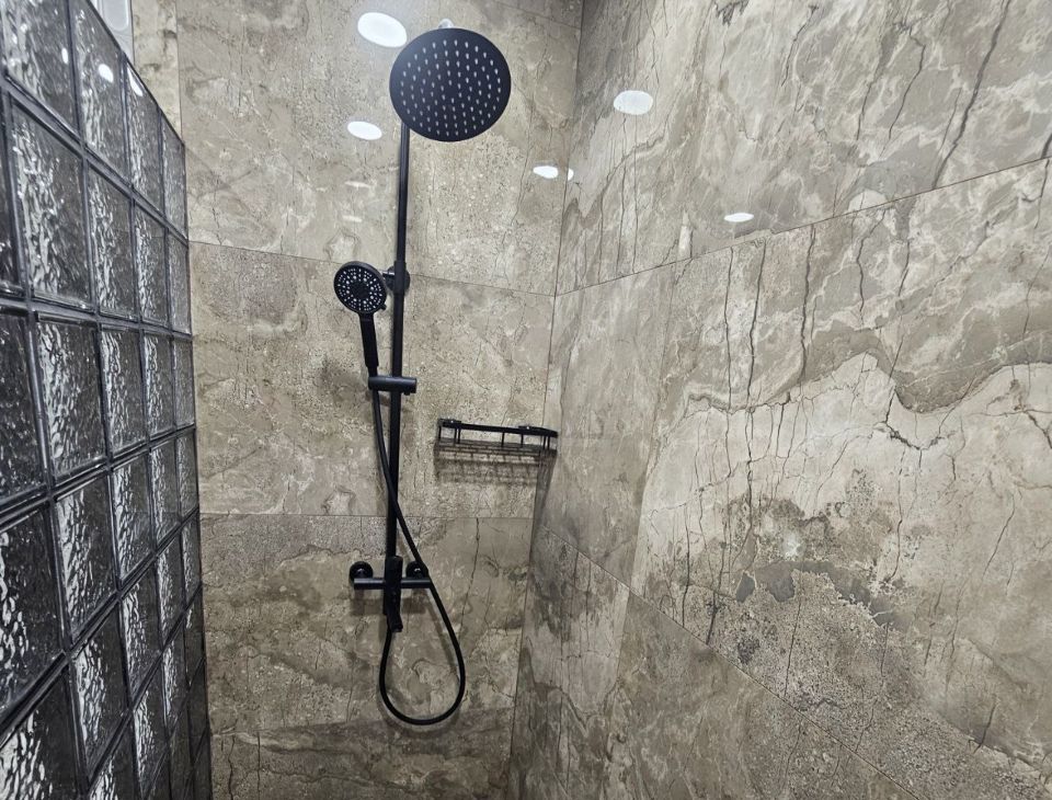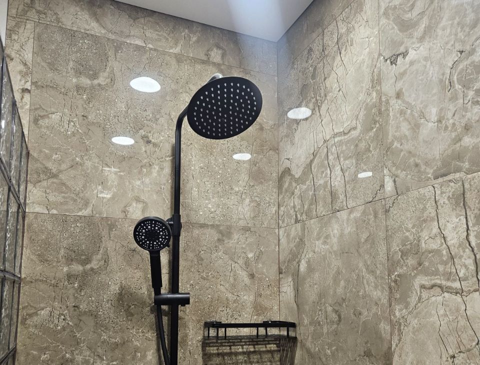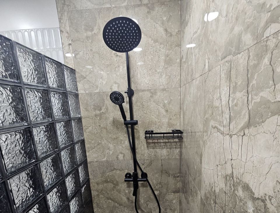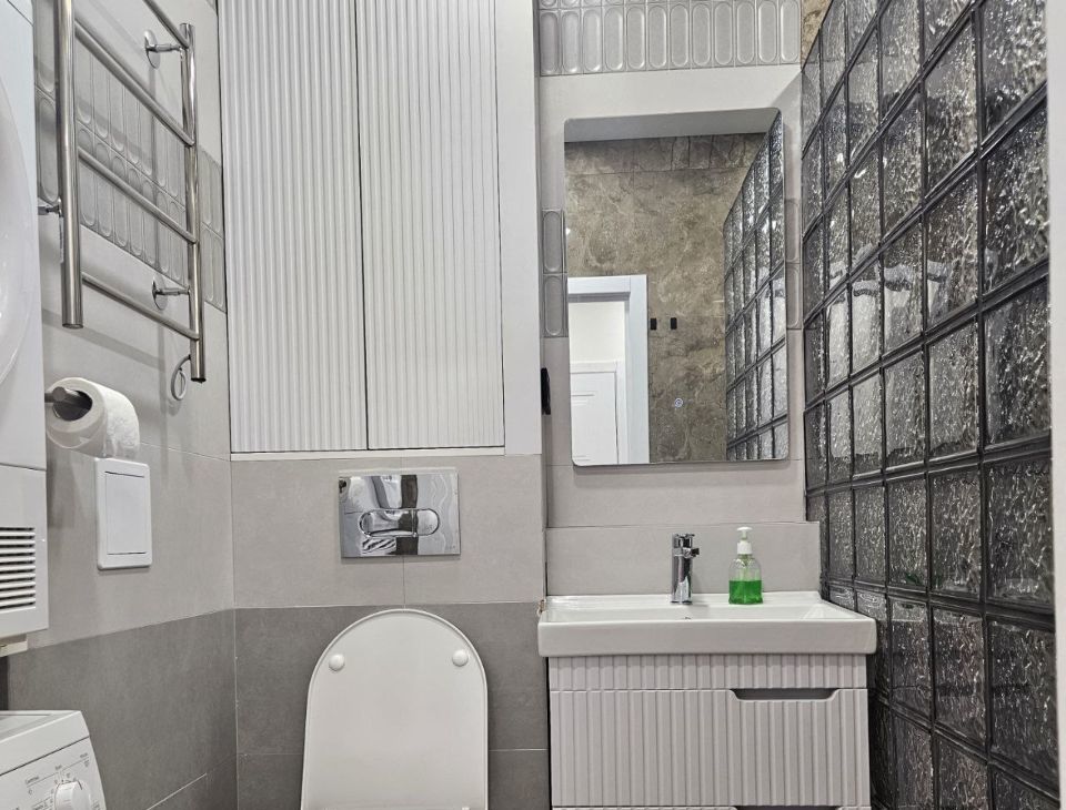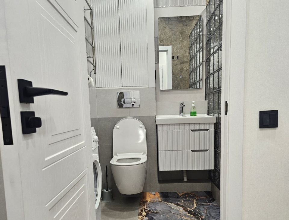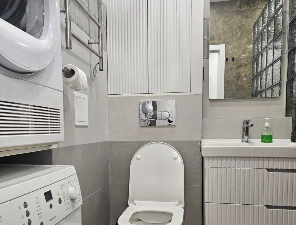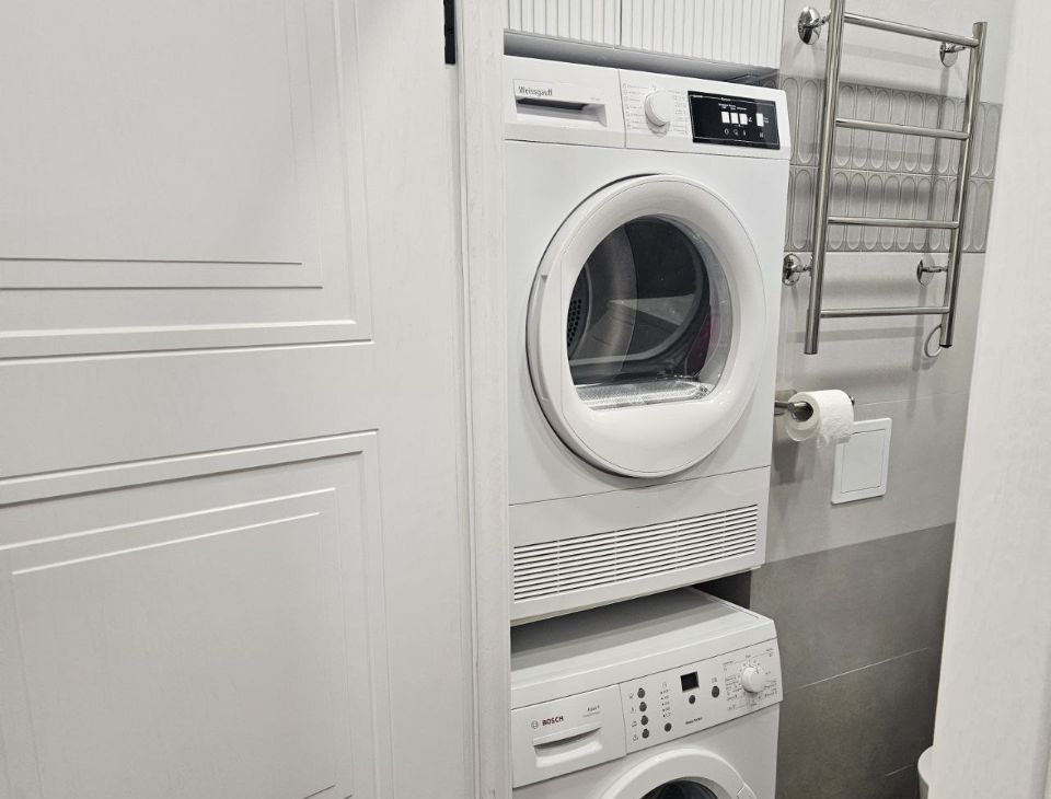 В санузле имеется стиральная машина, сушилка для белья, душевая кабина оборудована ,, тропическим душем,,