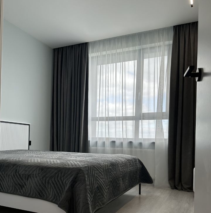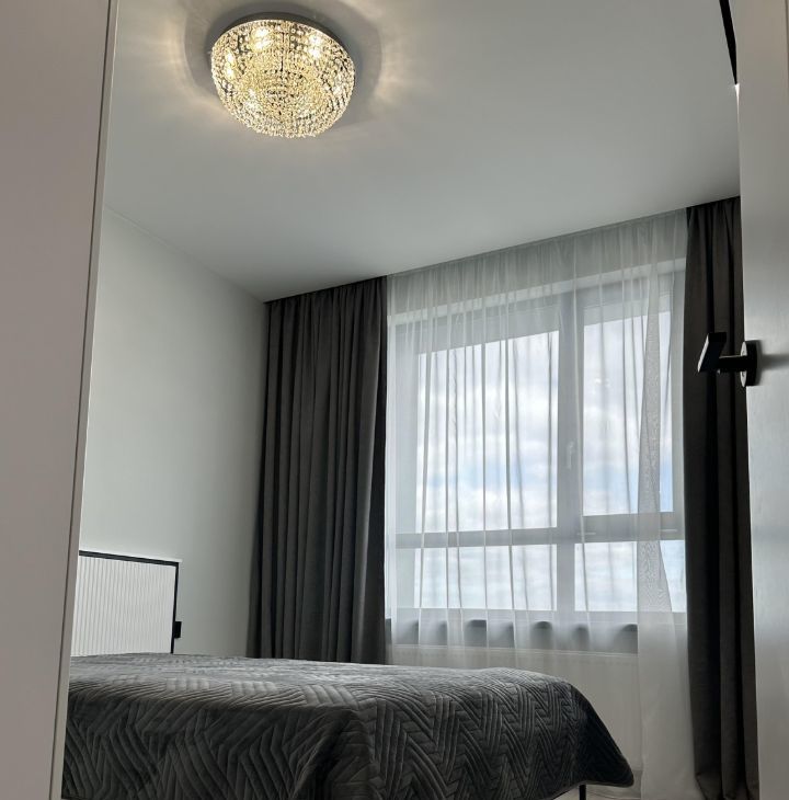 Спальня имеет просторную 2-спальнюю кровать, большой 3хметровый платяной шкаф, зону для мейкапа и две зоны света, позволяющую создать любую атмосферу по настроению. Подготовлена зона под ТВ, готов установить за свой счет ТВ и в спальню, приходите смотреть!
