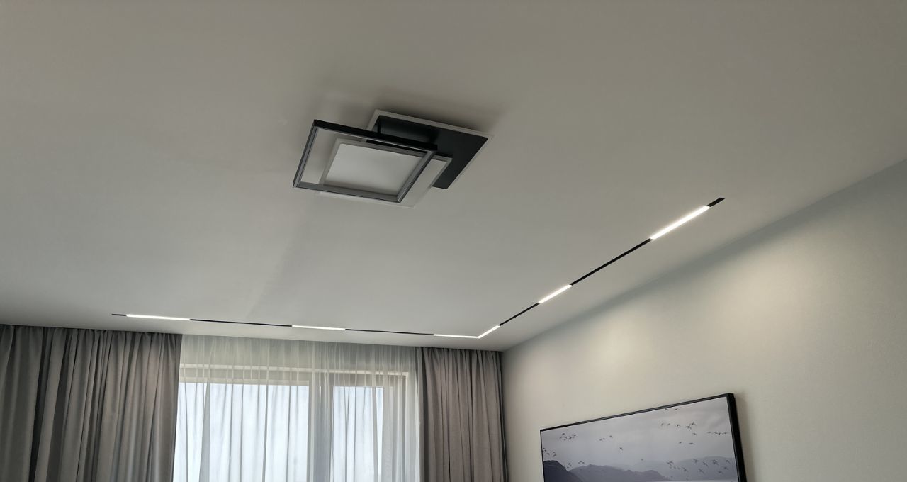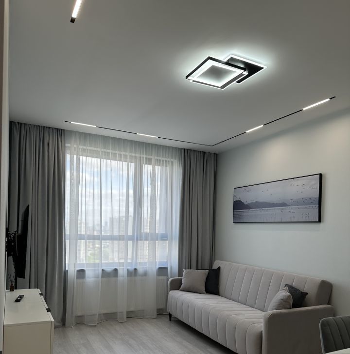 Во всей квартире выполнен дизайнерский свет с зонированием и возможностью корректировать светильники в треках по вашему желанию практически без ограничений.