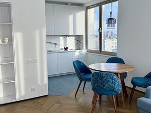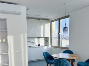В квартире все продумано для комфортного проживания: разнообразная подсветка зон, электрокарнизы, домофон, wi-fi, даже утюг. Восхитительный вид на город. В