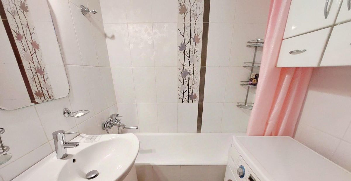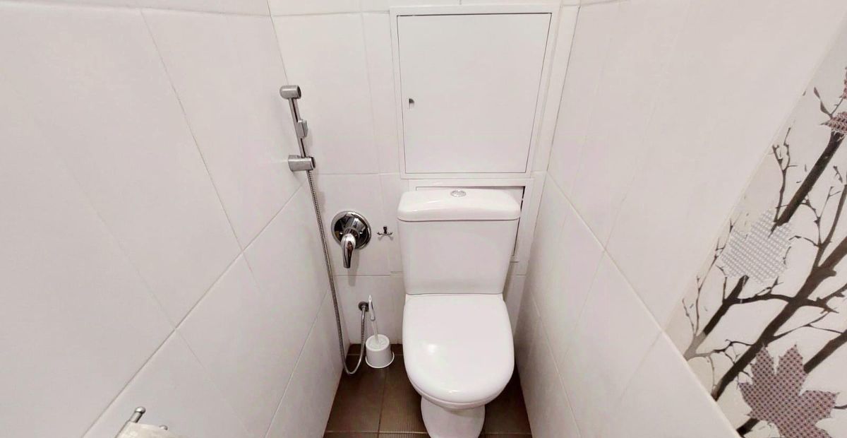 Санузел раздельный, кафель, ванна, есть гигиенический душ.