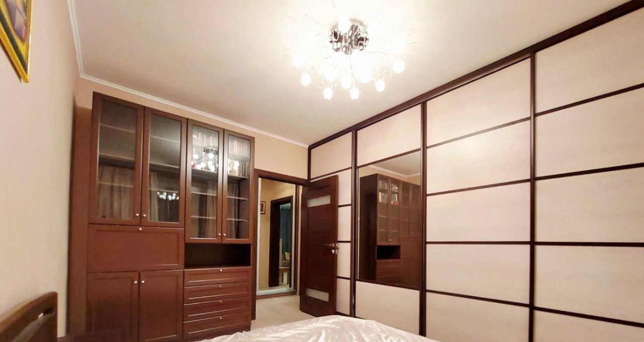 В спальне - 2х спальная кровать, шкаф для книг, большой и очень вместительный шкаф-купе.