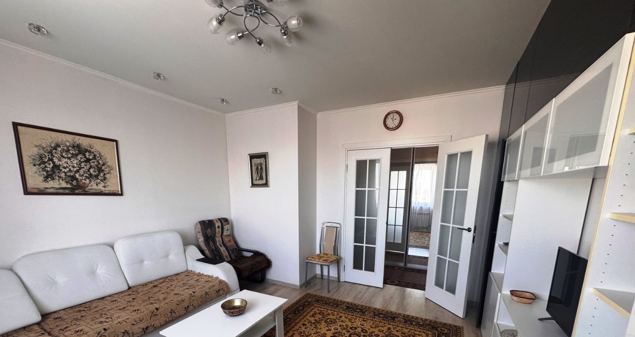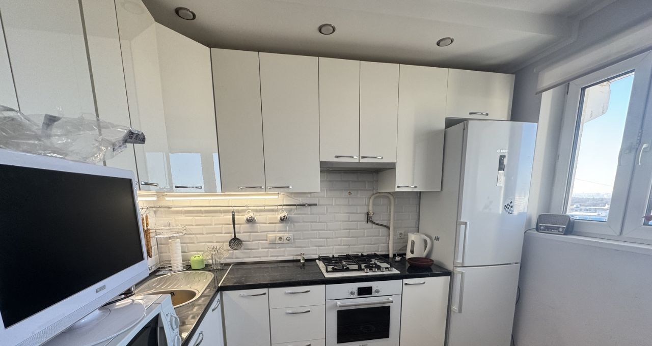 Мебель и техника: Квартира полностью меблирована. В наличии: кухонный гарнитур с техникой (холодильник, плита, духовой шкаф, вытяжка, стиральная машина), удобный шкаф-купе в прихожей, спальное место, диван.