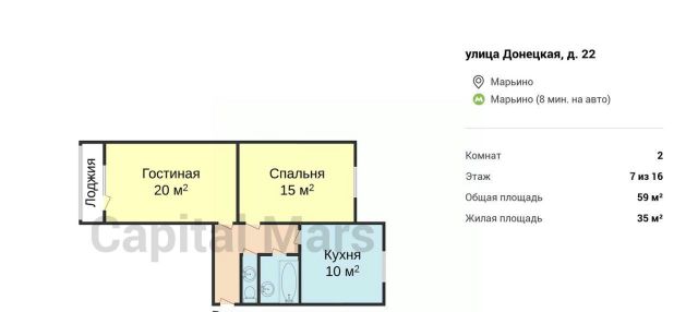 2-к кв. Москва Донецкая ул., 22 (59.0 м²)