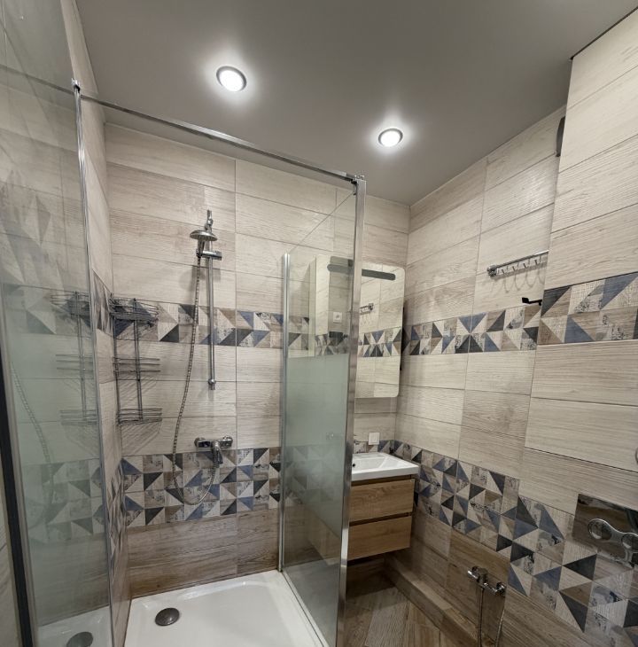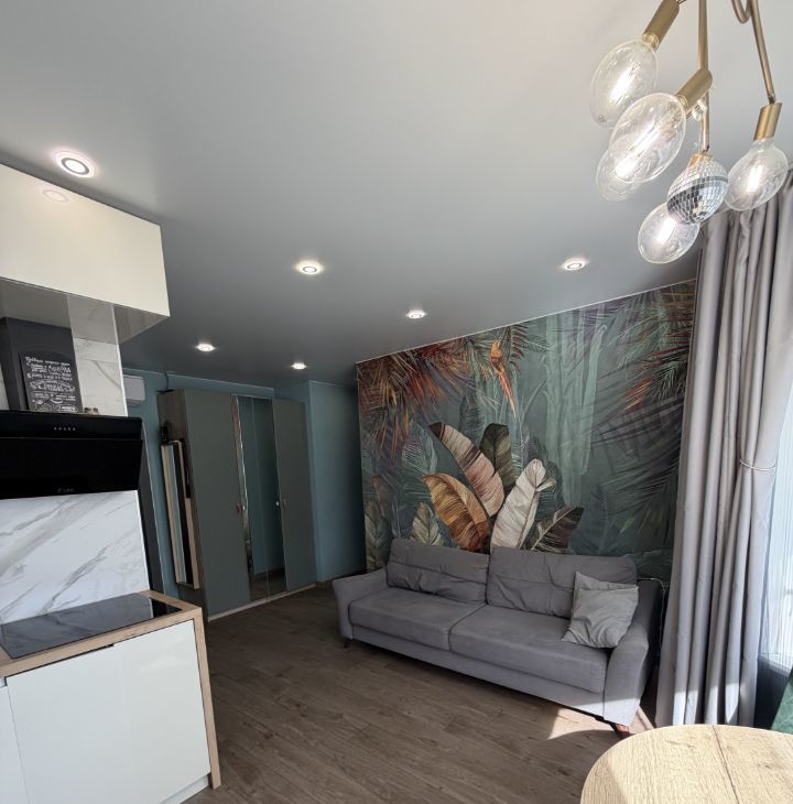 В квартире сделан качественный евроремонт. Просторная кухня площадью 10 кв. м полностью меблирована и укомплектована всей необходимой техникой: холодильник, посудомоечная машина и стирально-сушильная машина. В комнатах также есть мебель, что позволяет сразу заселиться и комфортно жить. Ванная комната оборудована душевой кабиной, а благодаря кондиционеру в квартире всегда будет приятный климат.