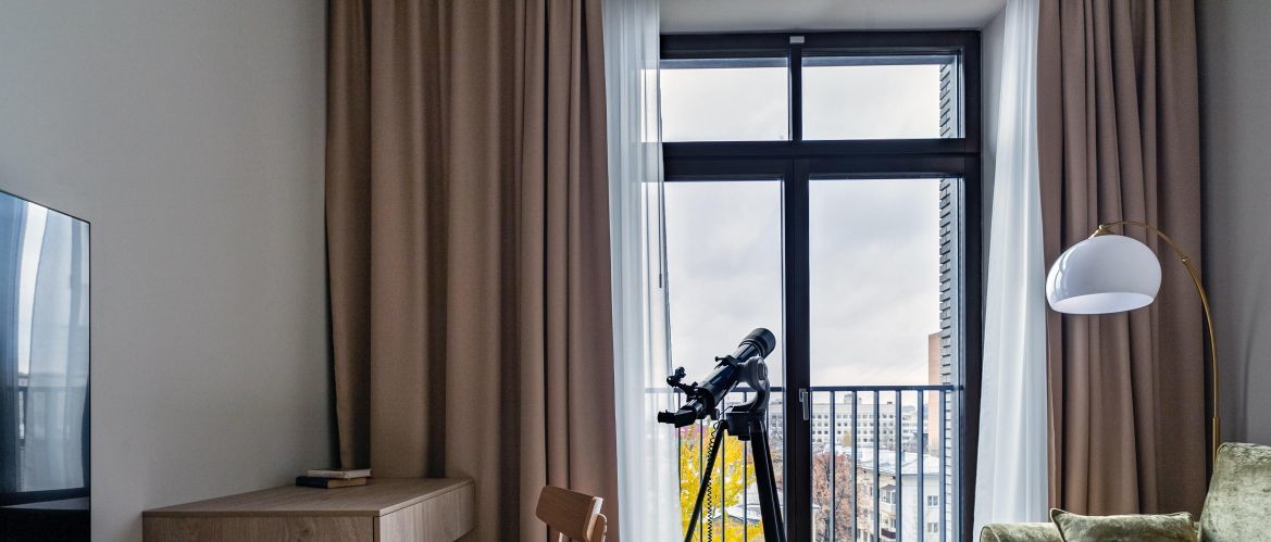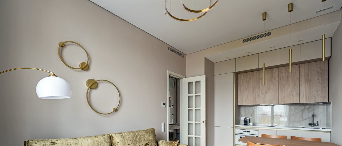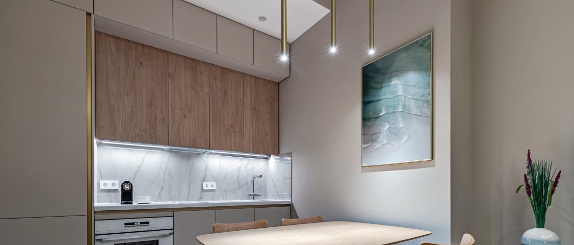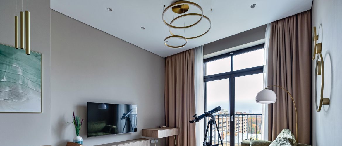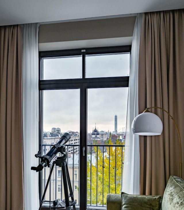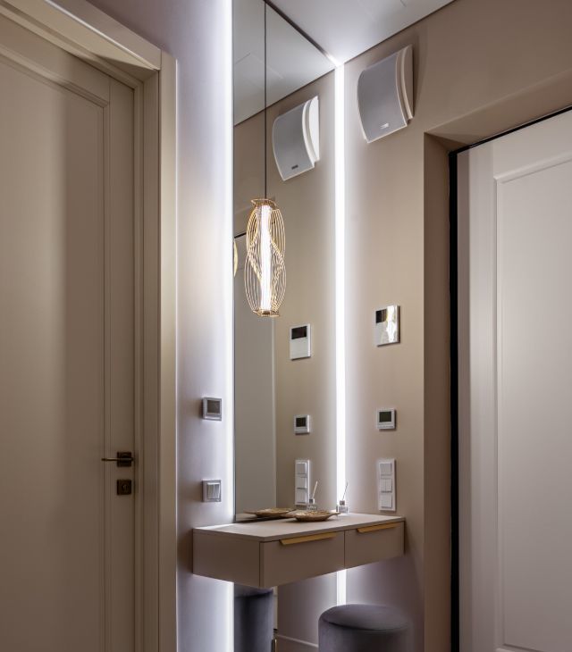 Южные окна наполняют квартиру светом в течение всего дня: утром он лёгкий и перламутровый, вечером — тёплый и мягкий. Свет здесь — часть архитектуры и настроения.