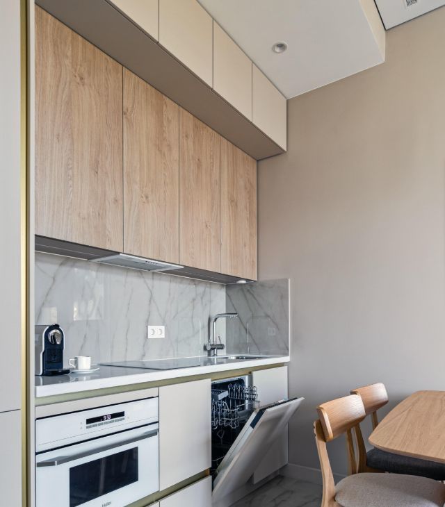 41 м²; евро-двушка; потолки 3,3 м; южные окна; тишина; канальный кондиционер без внутренних блоков; тёплые полы; премиальная техника; стиральная машина с сушкой; посудомоечная машина.