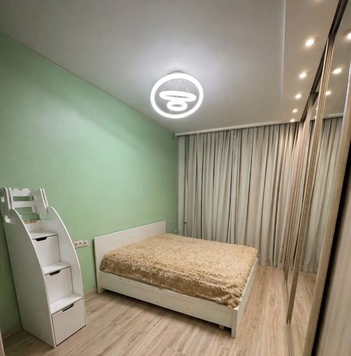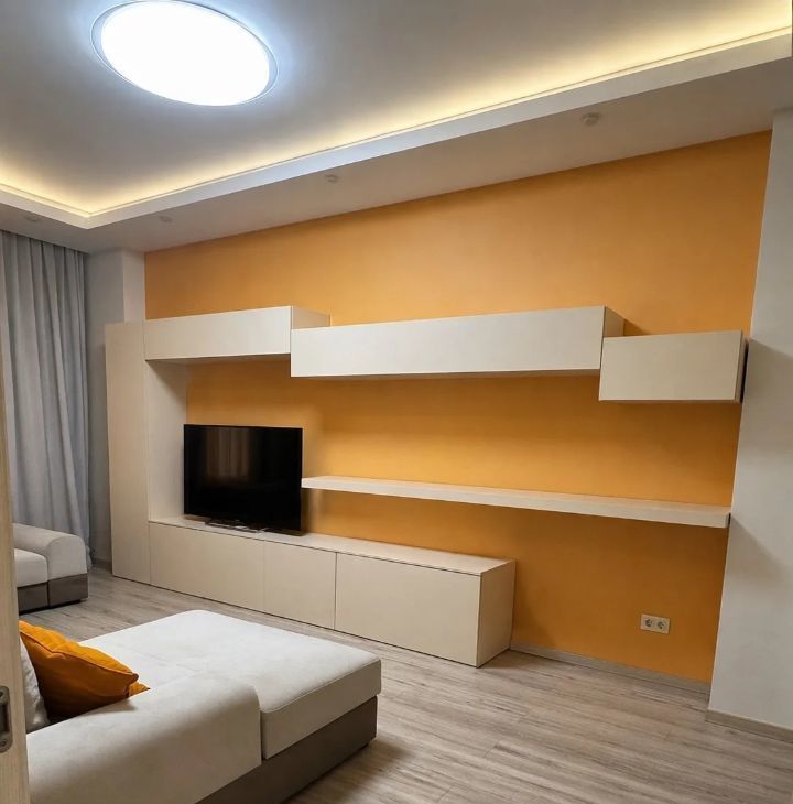Качественный нейтральный ремонт, светлые тона с акцентными цветами, чистое состояние.