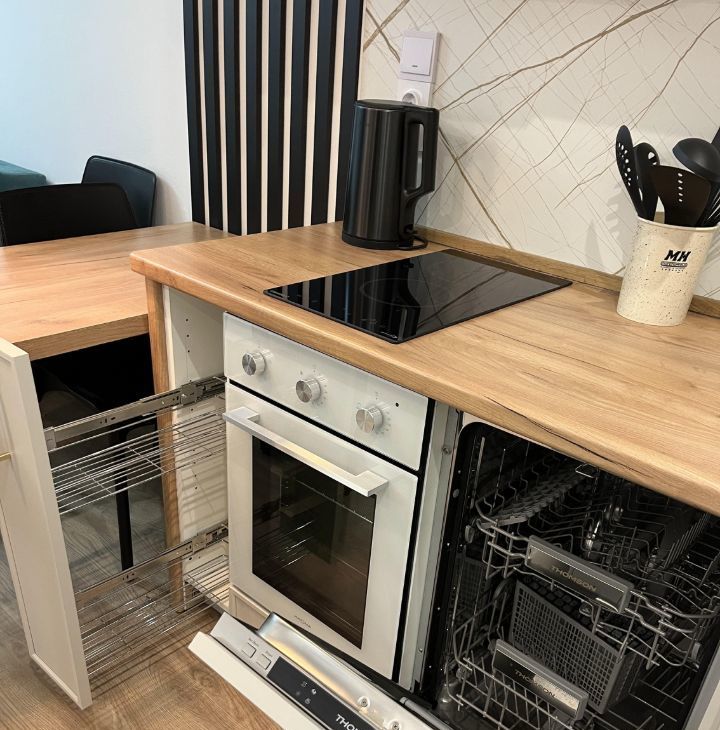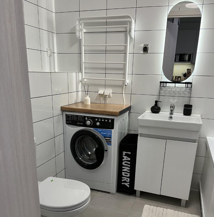 Квартира сдается в формате "заезжай и живи" - полностью укомплектована всем необходимым для комфортного проживания: вся новая техника и мебель (сплит система - кондиционер, стиральная машина, холодильник, посудомоечная машина, духовка, индукционная варочная панель, вытяжка, СВЧ, электрический чайник, вертикальный пылесос, парогенератор, столовые приборы и другая кухонная утварь).
