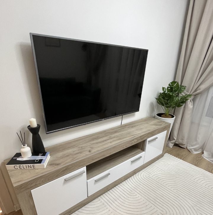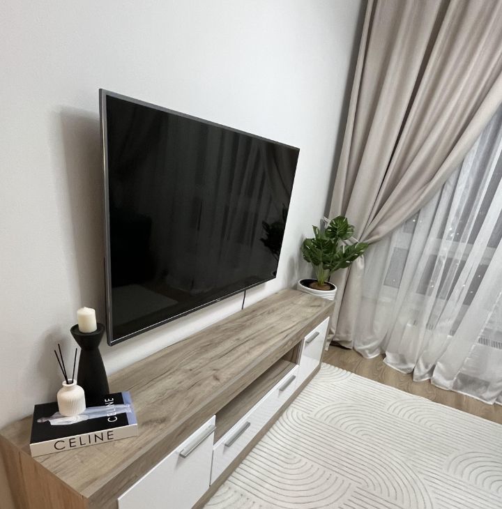 В гостиной - удобный большой раскладной диван, с коробом для хранения постельных принадлежностей, комод и ЖК-телевизор с большой диагональю (55").