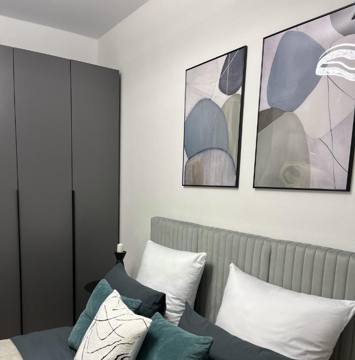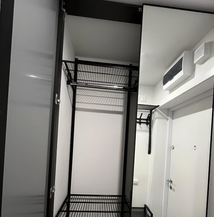 В спальне - вместительный шкаф и кровать 160х200 с подъемным механизмом и местом для дополнительного хранения, ортопедический матрас и все необходимые постельные принадлежности, включая наматрасник и постельное белье.