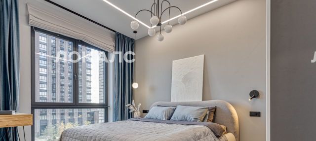 Квартира с панорамными окнами, укомплектована встроенной техникой BOSCH, мощным кондиционером, двумя электрическими тёплыми полами: в прихожей и в ванной комнате. Столешницы в квартире выполнены из искусственного камня на заказ. Корпусная мебель со встроенными подсветками и стеклом.