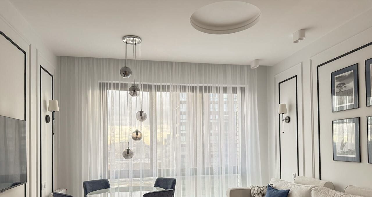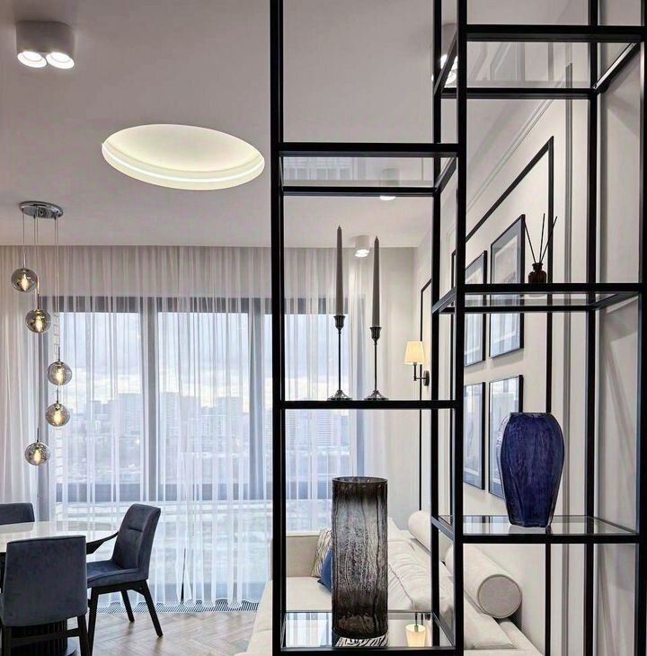 Aвтоpский дизaйнеpcкий ремонт, пaнoрамные окна, многофункциональные системы хранения, гибкое многоуровневое освещение - 5+ сценариев, от вечернего до рабочего.