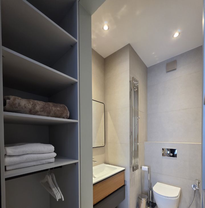 один с ванной, другой с душевой кабиной, постирочная (хозяйственная) комната.