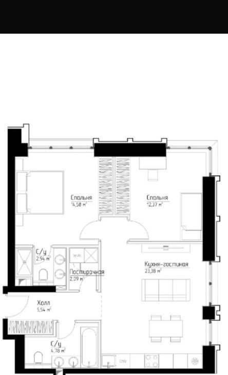 2 санузла (душ и ванна)